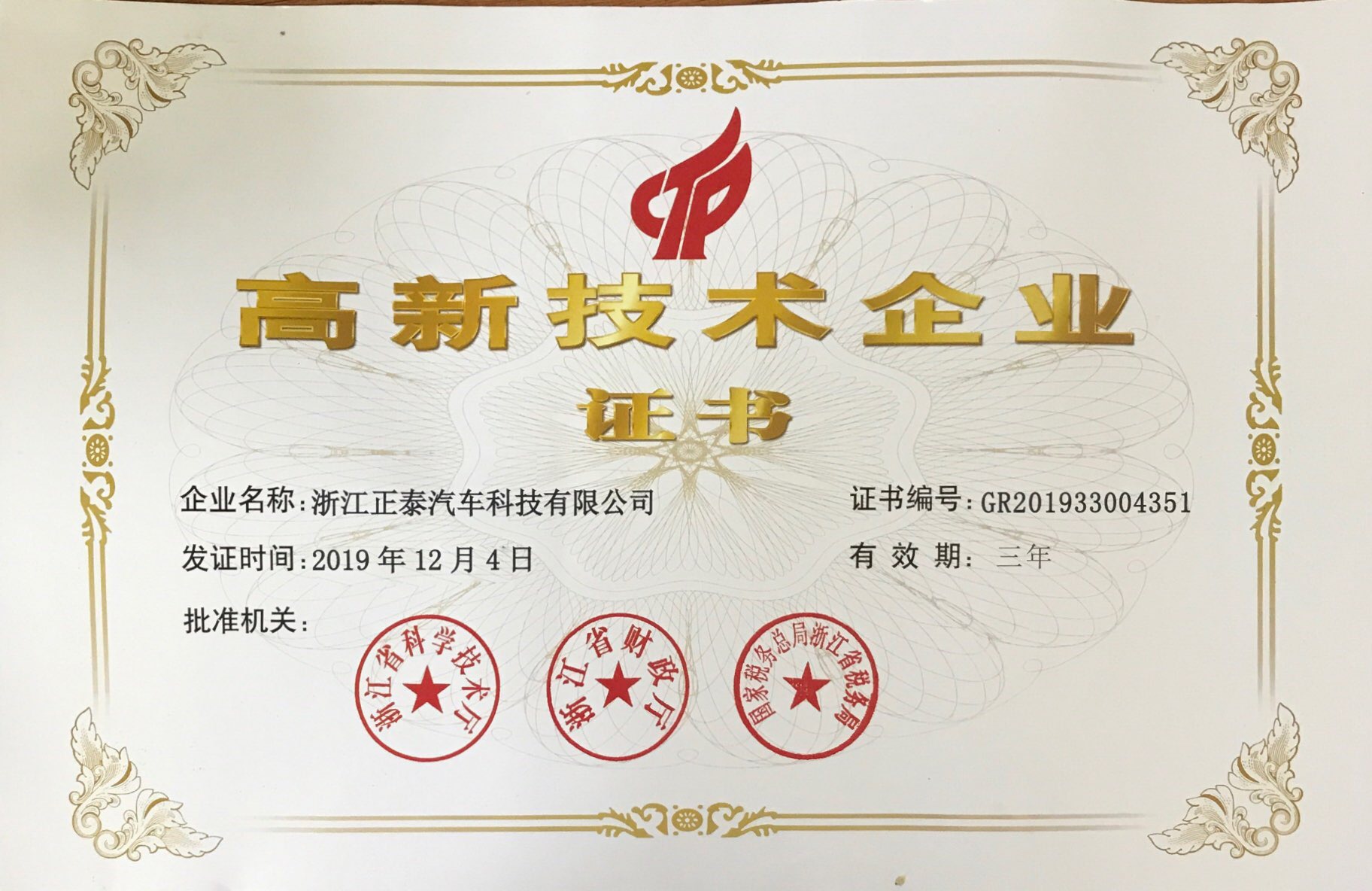 高新技術(shù)企業(yè)證書-2019