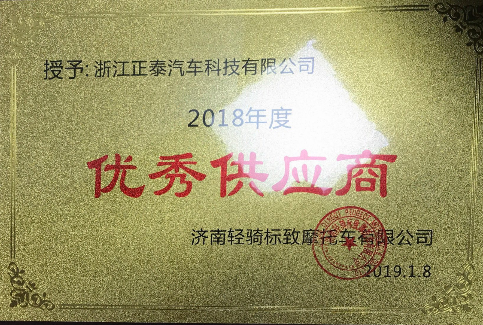 2018年度優(yōu)秀供應商濟南輕騎標致摩托車有限公司