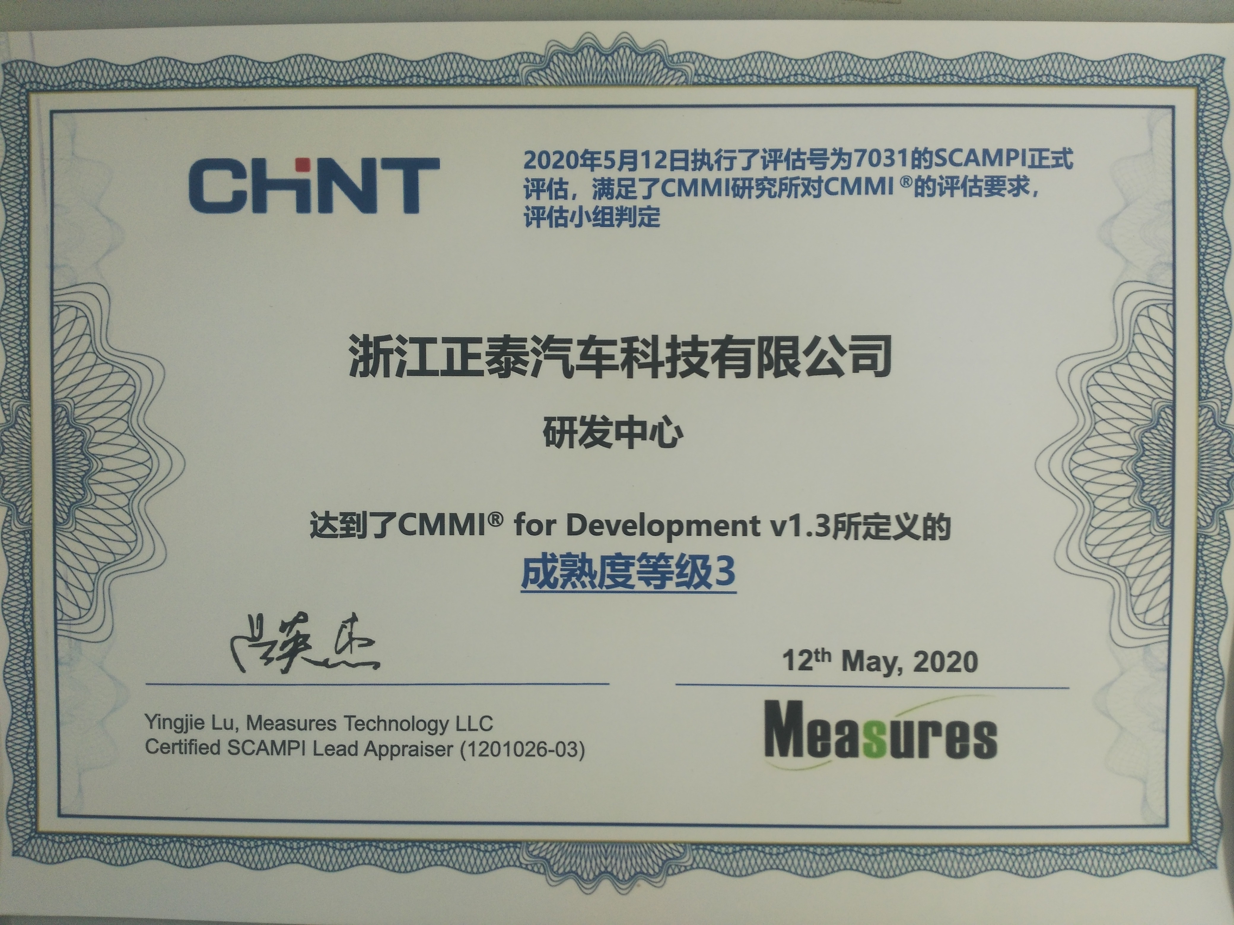 CMMI軟件成熟度評估等級3級證書