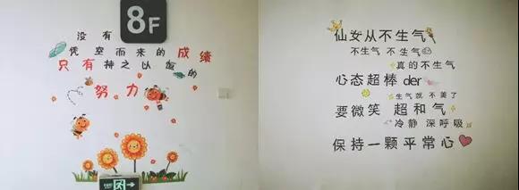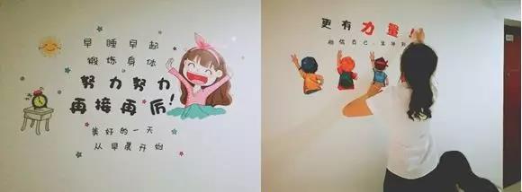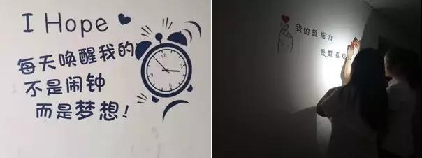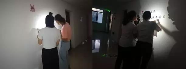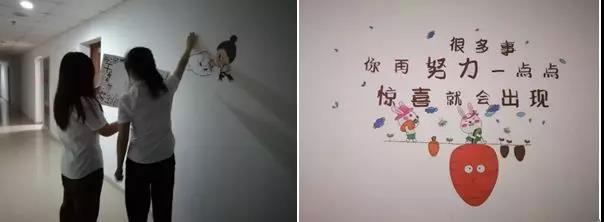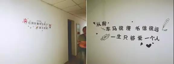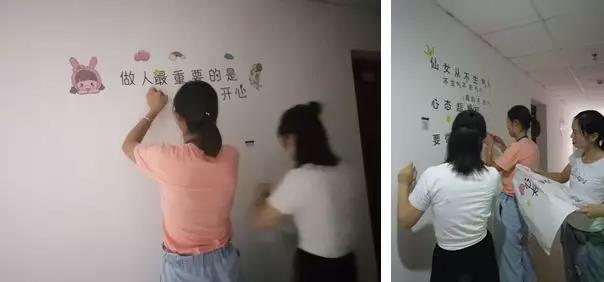 (經(jīng)過四個(gè)小時(shí)的通力合作,宿舍的白墻已經(jīng)換上美美的新裝啦)